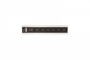 Supra mains distribution block consisting of Belgian Schuko sockets conforming to Belgian Standards. Input connector is a 10 ampere male chassis connector according to the international standard IEC-320, i.e. the same for most electrical multimedia devices with detachable power cord including ground lead. It provides a 10 ampere fuse and a non-intrusive filtering (NIF).