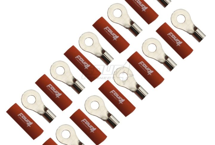 <p>FOUR Connect ring terminals have good quality shrink tube as isolator instead of regular rubber or plastic sleeves. Shrink tube protects the connection much better against oxidation than loose plastic or rubber sleeves. Many manufacturers make their terminals of brass that has more resistance than copper because brass it is much cheaper. With high current connections it would be wise to use real copper to ensure best connection and conductivity. All FOUR Connect terminals that are for 20 mmq or larger cables, are made of 100% copper. Connectors are rhodium plated to secure connection for years. This package includes 10pcs red connectors that fit to M4 bolt and take 20 mm2 cable.</p>